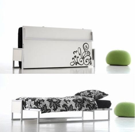 Opklapbed kan op deze manier midden in de kamer geplaatst worden!